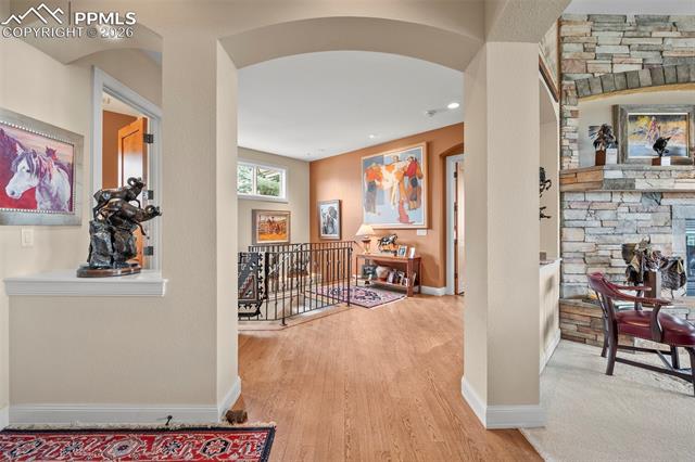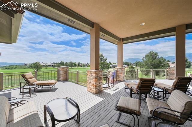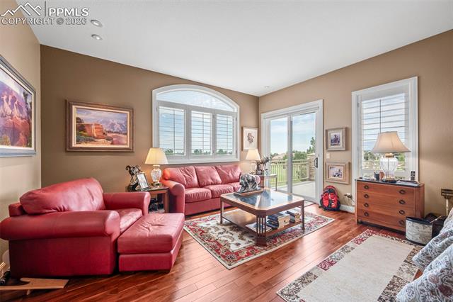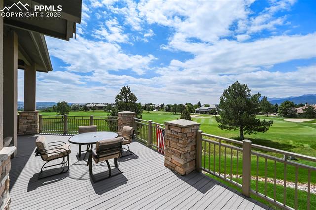 Welcome to living in the Greens at Kissing Camels. This over 6,000 sq. ft detached Golf residence is sited to take advantage of the amazing views of city lights, the Front Range, Pikes Peak and the garden of the Gods. Featuring the option of two expansive bedroom suites on the main with walkouts from Master, Living Room and Kitchen onto a large sweeping deck . There is room for everyone to gather with abundant space in Kitchen and Living room with wet bar and butler pantry. Built ins galore and roomy walk in closets. The Lower level features 2 more bedrooms with in suite baths, walk out to patio overlooking the Kissing Camels North Golf Course and green. Space for home theatre or large home gym, separate family room in lower level, wine cellar, storage and a second home office. Extensive use of natural stone, hard woods vaulted ceilings and lots of natural light finishes, The home lives like a single family home but offers the amenities the Green provides with landscape, snow removal and some exterior maintenance provided.