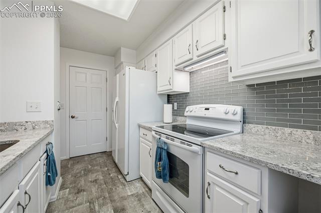 Ground level condominium unit with direct Pikes Peak & Front Range Views in immaculate condition with 3 bedrooms, 2 baths. The ground floor means no stairs and the oversize garage is just outside the front door offering storage and aiding mobility plus easy access. This westside condominium has really been updated to include all flooring, new furnace and air conditioning, stone on the fireplace, new mantle, new windows, bathroom remodel, new cement on back patio, bathroom and kitchen quartz countertops and freshly painted all make this one move in ready! The complexes West side location makes for easy access to roads, shopping, garden of the gods park and services. THE COMPLEX FEATURES 24 HOUR SECURITY, POOL, CLUBHOSUE AND TENNIS/PICKLEBALL COURT.