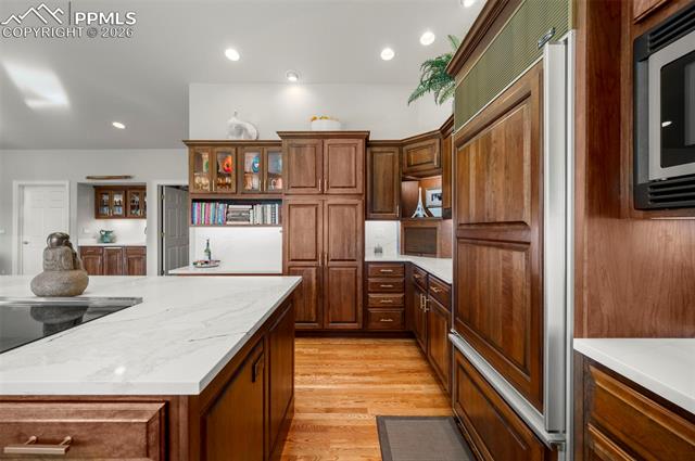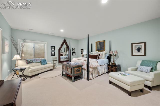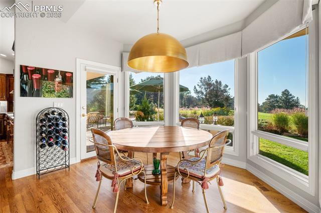 WONDERFUL KISSING CAMELS GOLF COURSE RESIDENCE! From the superb curb appeal to the panoramic views of the Kissing Camels Golf Course, this one is truly special! The property sits on the 2nd hole of the North Course, offering views of Cheyenne Mtn. & Pikes Peak! Expansive stacked rancher allows for one-level living! Open & airy great room * Gourmet kitchen w/quartz island! Lower level affords space for kids, grandkids, home office, gym, terrific large storage, guest suites or recreation/game areas. Large outdoor patio with built in fire pit, a great place to unwind as you watch the sun set over the mountains. Invisible fence for your pets, brand new furnace and humidifier, radiant in the floor of the primary bathroom. Immaculate and lovingly cared for, this is one you must see, act quickly as it won't last!