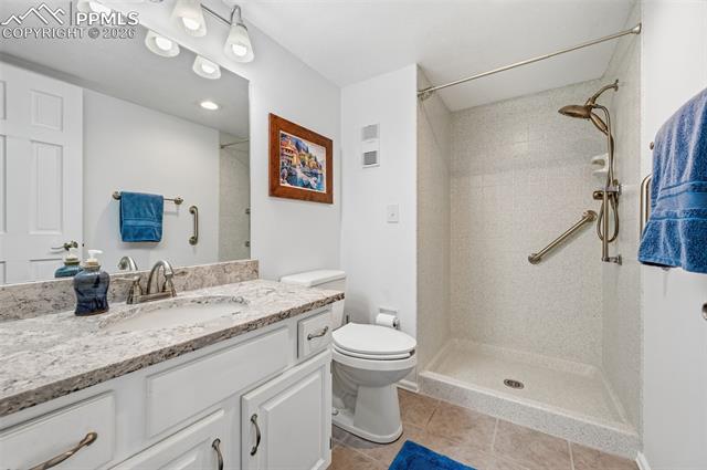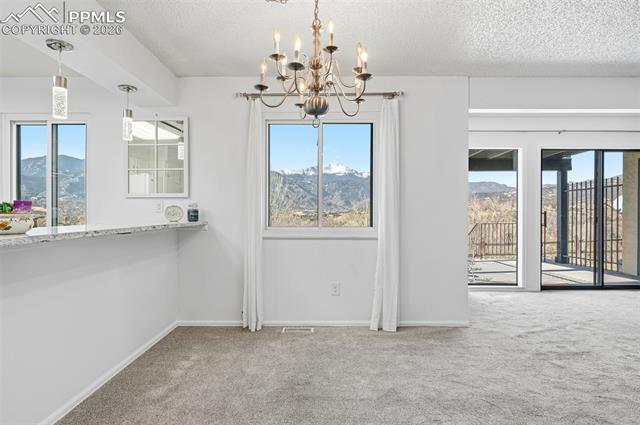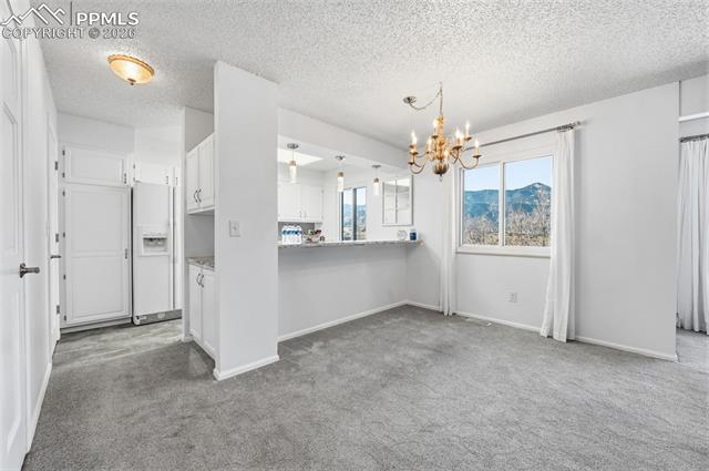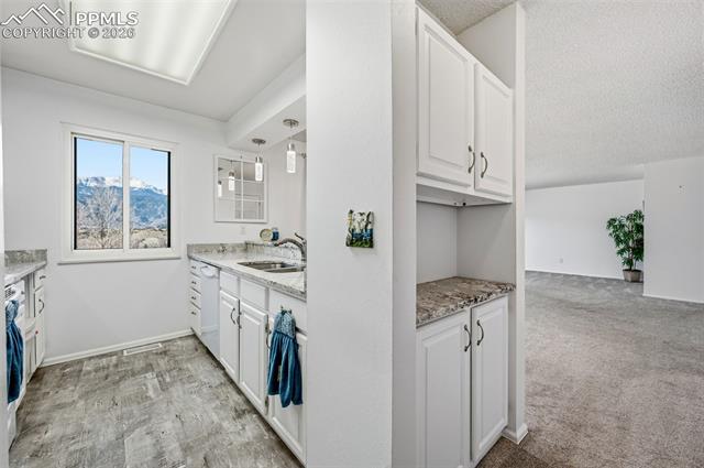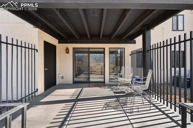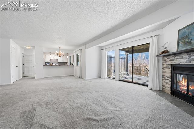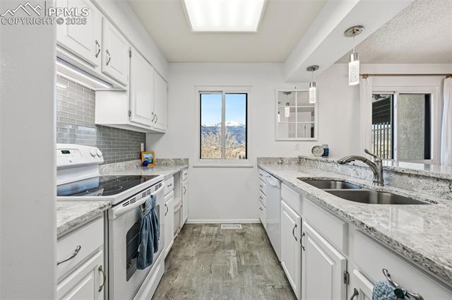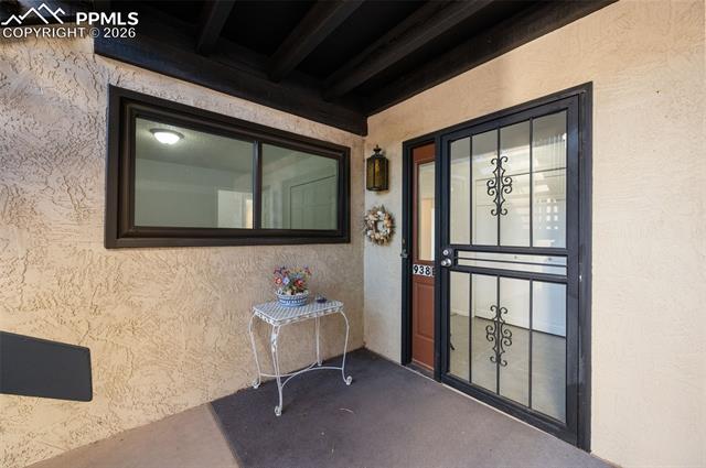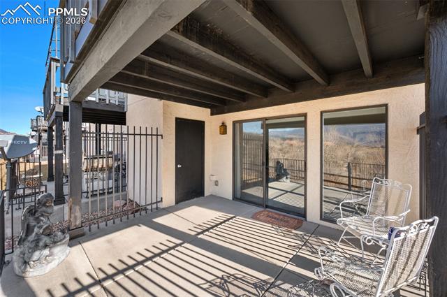 Ground level condominium unit with direct Pikes Peak & Front Range Views in immaculate condition with 3 bedrooms, 2 baths. The ground floor means no stairs and the oversize garage is just outside the front door offering storage and aiding mobility plus easy access. This westside condominium has really been updated to include all flooring, new furnace and air conditioning, stone on the fireplace, new mantle, new windows, bathroom remodel, new cement on back patio, bathroom and kitchen quartz countertops and freshly painted all make this one move in ready! The complexes West side location makes for easy access to roads, shopping, garden of the gods park and services. THE COMPLEX FEATURES 24 HOUR SECURITY, POOL, CLUBHOSUE AND TENNIS/PICKLEBALL COURT.