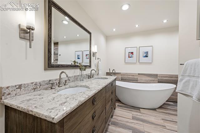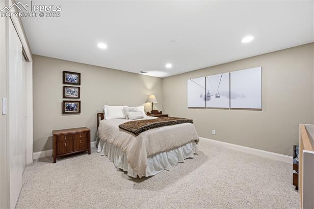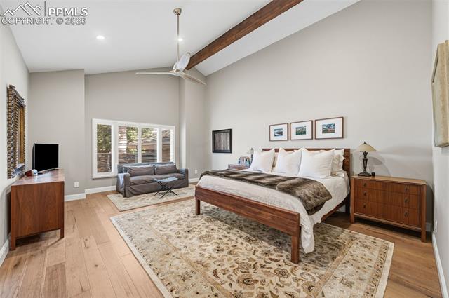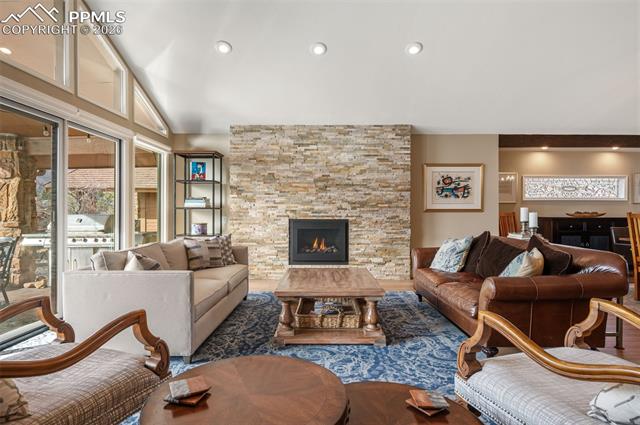 Wonderful 5 bedroom townhome in Camels Ridge! This expansive townhome features 5 bedrooms, bonus room, 4 baths along with outstanding Pikes Peak and Front Range views. The main level includes a living room / dining room combination with wood burning fireplace, wet bar and walkout to a covered patio. The large kitchen features tons of cabinets, pantry and breakfast area. There are two main level bedrooms. The spacious master includes a 5-piece bath and two walk-in closets. The second main level bedroom could also be a terrific den with walkout and pocket doors into the living room. The upper level includes two bedrooms, full bath and small bonus room. The lower level offers a large family room, small kitchen, wood burning fireplace, the 5th bedroom, 5-piece bath, sauna and large bonus room great for office or hobby room. The outdoor areas include a beautiful front courtyard as well as a covered patio with sensational views.