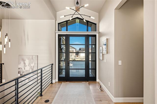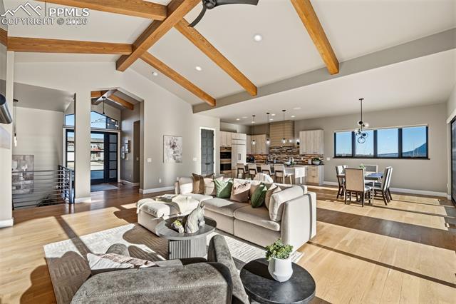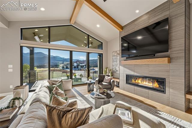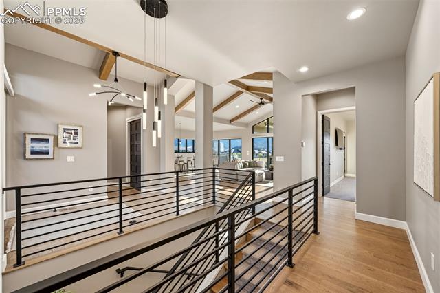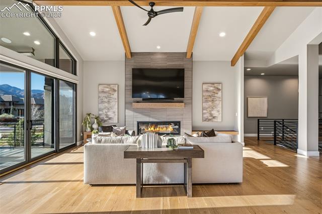 GORGEOUS GATED CATHEDRAL RIDGE HOME! This outstanding 4 bed+office, 4 bath home offers exceptional views of Pikes Peak, the Front Range, and the Garden of the Gods rock formations. Located in the gated community of Catheral Ridge. The vaulted ceilings and floor to ceiling windows provide excellent natural light and the ability to enjoy your views from any room while entertaining or simply enjoying the majestic mountains of Colorado. The custom features throughout included hardwood flooring, custom cabinetry, wood beamed ceilings, main level master with en-suite bath, many walkouts to deck with built in gas fireplace, and two additional bedrooms. The lower level features a wet bar, additional family room, office/gym, the remaining two bedrooms and patio with fenced backyard for pets or privacy.